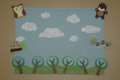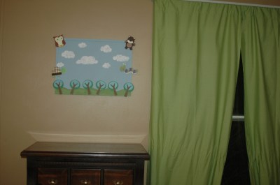 It’s going to hold photos as most of the decoration is paint. The only problem is that we don’t want to use pushpins as it gets older. They will work for the first year or so because it’s above a dresser, but then we’re going to have to find another solution.