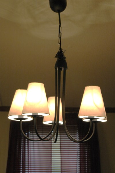 One of the many projects that both Hubby and I have been neglecting for so long is our IKEA chandelier. See that little black wrought iron-style chandelier in the “Favorite Things of the Minute”? That’s the one we bought in OCTOBER and still hadn’t put up until this month.
