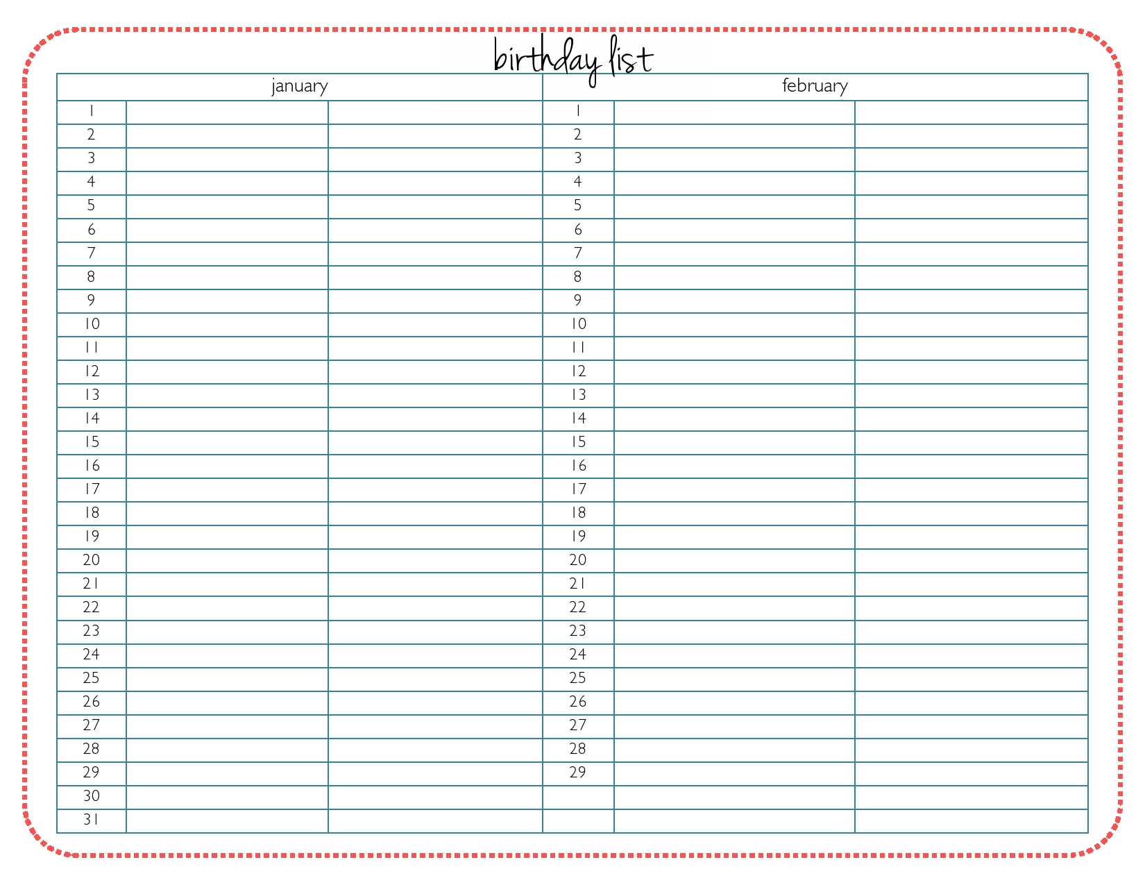 If you are like me, you always have the best of intentions when it comes to sending out birthday cards to friends and family, but often you forget exact dates or realize two days too late to send a card (because it takes two days in the mail, duh!). So, in the spirit of sharing fun new things on my blog and revamping everything, I made this nifty birthday list.