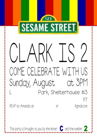 I’ve already created an inspiration board on Pinterest but I find that I need paper goods finished before anything else to really get the theme of a party going. Last year, I made some super awesome Yo Gabba Gabba invitations that were completely from scratch, but this year I borrowed a little inspiration from this blogger. I can’t say that I won’t be copying even more ideas from her AMAZING party! My husband and I discussed it and decided upon a Sesame Street theme, which will allow for many toddler-appropriate activities.
