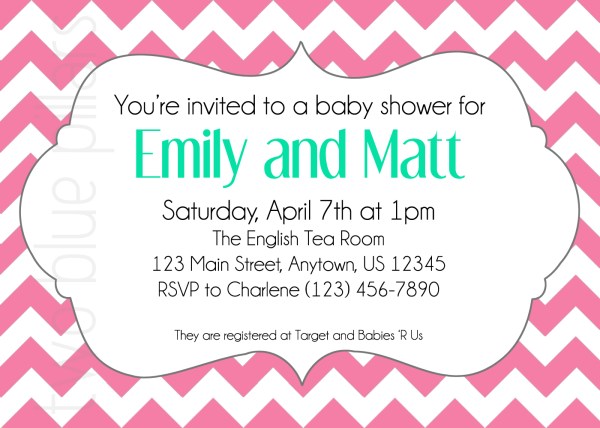 I made my own chevron print today, forgoing the tradition route of using a brush or a custom shape. It took a long time to assemble and perfect, but what I’ve ended up with is the quintessential chevron print that can easily be color-customized without sacrificing quality. It was only fitting, then, to roll out a new addition (haha, totally didn’t intend that pun until I used it): baby shower invitations! These can also be changed for WHATEVER kind of invitation you’d like, and I’ll switch up the wording to add them as well. Check them out and click on the pictures to purchase.
