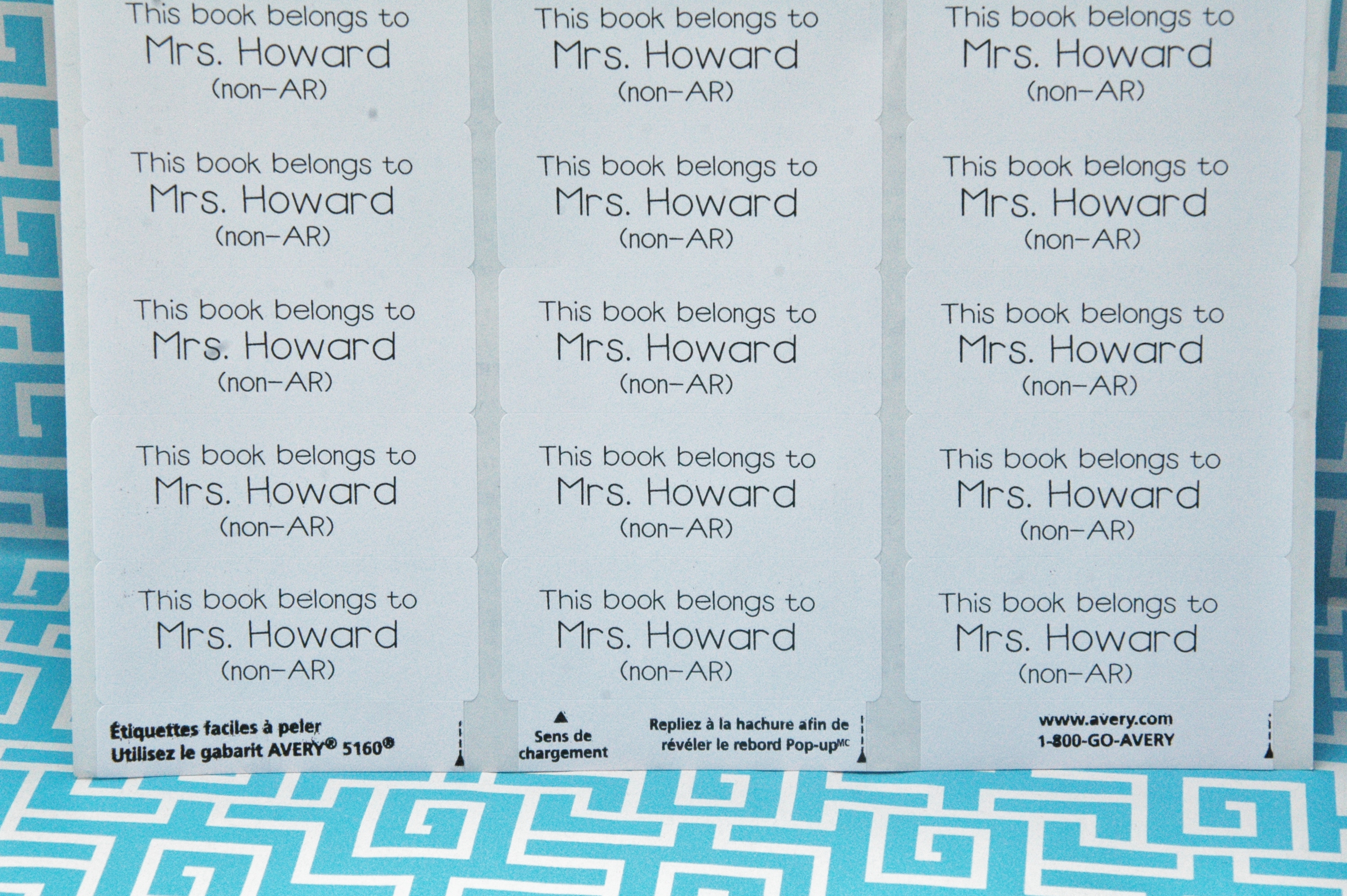 These labels are awesome, and I had to create my own. I use these Avery 5160 labels from Sam’s because they are cheap and don’t have all that extra label stuff around the outsides of the labels (and you get 100 sheets so they’ll last forever!).
