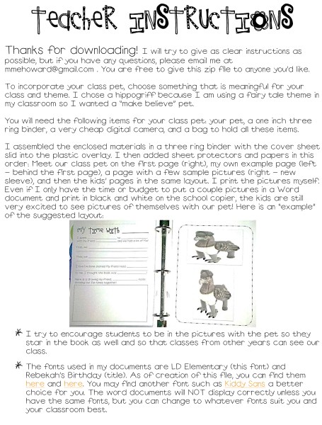 Looking around at resources for having a class “pet” of the stuffed variety, I realized that there weren’t many things available. Thankfully, I’ve been introduced more thoroughly to strategies from my amazing cooperating teacher, but I wanted to use some printables to make my life a little easier and require less policing on my part of a journal. Filling the void, I made these awesome printables that are free for you to download! Click on the LINK ABOVE to get a zip folder containing both Word and PDF documents (yes, I’m giving you editable documents!) of this awesome kit. Enjoy!