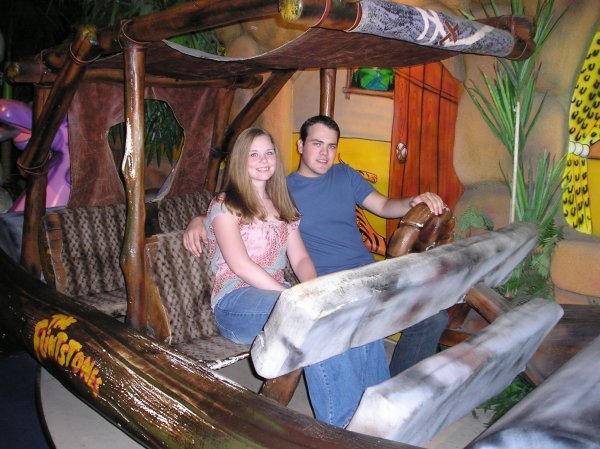 Right before I started college, Jason and I took our first vacation together. We went to Gatlinburg, TN and did the tourist thing. Here we are at the Star Cars museum in the Flintstone car. We look so young (and skinny!) in this picture!