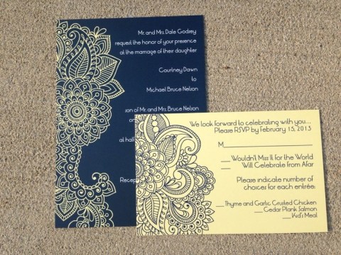 The invitations are my pride and joy, and I am so glad that my sorority sister loves them as much as I do. They represent how far I have grown over the few years I have been doing invitations, and what happens when I persevere in a project. I wish this picture did them more justice, and I wish I had ordered a few extra to keep for my portfolio! (Fear not – I can always order more from the pro printing company I use.)
